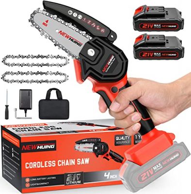 The Mini Cordless Chainsaw Kit by New Huing is a portable and efficient tool for tree trimming and branch wood cutting. With its upgraded motor and high-wear resistant chains, it provides a powerful cutting experience. The lightweight design and anti-slip handle make it easy to use for long periods without causing fatigue. The 21V rechargeable battery offers fade-free power and has no memory loss after charging. It delivers quick cuts, taking about 4 seconds to cut a 3-inch diameter log. The Mini Cordless Chainsaw Kit is ideal for both women and men, and is suitable for pruning bushes, small trees, and medium-sized limbs. Overall, it is a functional and reliable tool that can handle various cutting tasks.
