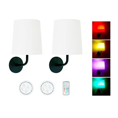 The PESUTEN Wall Sconce Lighting Decor is a set of two battery-operated wall sconces with fabric shades. These rustic retro wall lamps feature 16 RGB colors that can be changed in different modes to create the perfect ambiance. The included remote control allows you to easily adjust the color and brightness settings. With its simple fabric design, the sconces are suitable for various decoration styles and can be used in bedrooms, living rooms, hallways, and more. The soft and non-dazzling light creates a warm and comfortable environment. Installation is easy, with no wiring or plug-in required. The sconces are powered by 3 AA batteries (not included). Overall, this wall sconce set provides an easy and stylish way to enhance the lighting in your space.