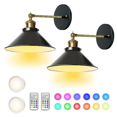 The Battery Operated Wall Sconce is a vintage wireless wall light set that includes two sconces. These sconces are rechargeable and can be easily installed in rooms without electricity. They feature 13 RGB colors and nature warm light, allowing you to create various atmospheres. The sconces have a timing function and memory function, making them convenient to use. With a 240-degree adjustable head, you can rotate the direction of the light source according to your needs. Perfect for bedrooms, living rooms, hallways, and more, these wall sconces are versatile and stylish. They are well-made and provide a nice lighting effect. However, the light source may not be very strong. Overall, the Battery Operated Wall Sconces are a great addition to any space.
