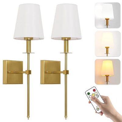 The Battery Operated Wall Sconces Set Of 2 is a fantastic lighting solution that combines style, convenience, and functionality. With its wireless design and remote control operation, you can easily control the brightness and color temperature to create the perfect ambiance in any room. The elegant gold finish and white glass globe add a touch of sophistication to your interior decor. The sconces are easy to install and charge, and with a long battery life, you can enjoy hours of illumination without worrying about power outlets. The only drawback is the inclusion of only one remote control, which may require sharing if you want to control both sconces independently. Overall, these wall lamps are a great addition to any home.