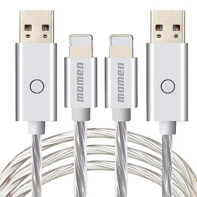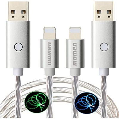 The momen LED Charger Cable is a 2-pack of 10FT lightning cables that are MFi certified, ensuring compatibility with various Apple devices. These cables come in blue and green colors and feature five different lighting modes, allowing you to choose the mode that suits your preference. The cable is widely compatible with iPhone models and various iPad and iPod devices. It supports fast charging with its built-in smart current-limiting chip and is capable of charging compatible devices up to 80% in just 35 minutes. The cable is made with high-quality materials, including a gold-plated USB head and a soft TPE cover for excellent heat dissipation and flexibility. It also has three layers of wire protection, including a pure copper core, making it durable and safe to use. Overall, the momen LED Charger Cable is a convenient and stylish option for charging your Apple devices.