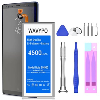 The WAVYPO Battery for Galaxy Note 8 is a high-quality replacement battery with a capacity of 4500mAh. This battery is compatible with the Samsung Galaxy Note 8 and provides over 700 charging cycles with efficient charging. It is made of world-class Li-ion battery cells and has UL, CE, and Rohs certifications. The battery comes with a repair toolkit, making it easy to replace. It is recommended to turn off the phone prior to replacement and ensure a secure connection to the mainboard. WAVYPO offers the best customer service and a satisfaction guarantee. Upgrade your Galaxy Note 8 with this reliable battery replacement.