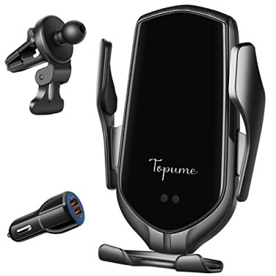 The Wireless Car Charger is a 10W Qi fast charging auto-clamping car phone mount air vent phone holder. It combines the convenience of a phone mount with the functionality of a wireless charger. The built-in intelligent chip provides multiple protections for your phone. With auto-clamping arms and a 360° rotating ball, it offers easy and secure phone placement. You can use it with or without removing your phone case (for most cases in the market). The package includes a wireless car charger mount, a USB QC 3.0 car charger, an air vent clip, a Type C cable, and a user manual. Get this wireless car charger for a hassle-free charging experience while driving.