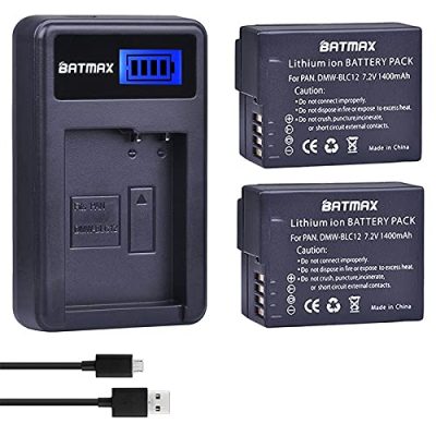 The Batmax 2X 1400mAh DMW-BLC12 Replacement Battery and Charger is a high-quality and affordable solution for Panasonic cameras. It includes two replacement batteries and a dual USB charger with a Type C port. The Batmax batteries are compatible with various Panasonic camera models, such as DMC-G5, DMC-G6, DMC-G7, DMC-G85, and more. The charger features an LCD display for monitoring the charging status and has built-in protection against over-voltage, over-charging, and short-circuits. With its soft-start function, it prevents damage from large charge currents. This portable and convenient battery and charger set is perfect for travel and home use. The Batmax products are CE certified and tested to match OEM products.