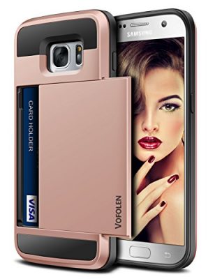 The Vofolen Case for Galaxy S7 is a stylish and practical wallet case designed specifically for the Galaxy S7. It features a back slot that can hold up to 2 cards, such as an ID, credit card, or driver's license, as well as cash. The case is constructed with a shock-absorbent rubber sleeve and an anti-scratch PC panel, providing both protection and a metallic stylish look. It has precise cutouts for the camera, volume buttons, and speaker, and offers easy access to all the phone's features. The case is available in a beautiful rose gold color. Overall, it is a reliable and convenient case for the Galaxy S7.