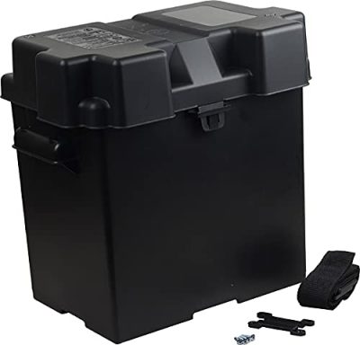 The Camco RV/Marine Battery Box is a reliable solution for protecting your 6-volt battery in RVs or marine vessels. Its heavy-duty construction ensures durability and corrosion resistance, while its secure strap and clamp system provides added stability. The box meets U.S. Coast Guard specifications, guaranteeing compliance and peace of mind. However, some units may come without the strap, and the label can be challenging to remove. Overall, if you’re in need of a sturdy and functional battery box that offers maximum protection, the Camco RV/Marine Battery Box is a solid choice.
