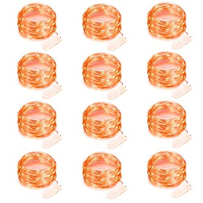 Light up your Halloween with these 12 pack orange fairy lights. The 7 feet long silver wire is flexible and waterproof, perfect for indoor and outdoor decorations. With 20 LED lights and long battery life, you can easily wrap them around trees or create DIY crafts. The low energy consumption ensures safety and the soft light protects your eyes. Whether it's for a party, wedding, or Christmas, these lights are suitable for various occasions. They are easy to use and come with two batteries per light. Let these beautiful orange lights add a magical touch to your festive decor.