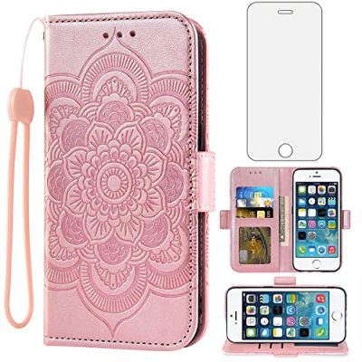 The Compatible with iPhone 5S 5 SE 2016 5SE Wallet Case and Tempered Glass Screen Protector Flip Cover Card Holder Cell Phone Cases for iPhone5 iPhone5s iPhoneSE iPhone6se i 6SE iPhone5se Women Rose Gold is a practical and stylish accessory for iPhone users. It offers convenience with its card holder and versatility with its kickstand feature. The rose gold color adds an elegant touch to the phone, making it a fashionable choice. With the added bonus of a tempered glass screen protector and detachable wrist strap, it provides excellent value for money. While there have been some complaints about size and durability, the overall positive customer rating shows that it is a reliable product worth considering.