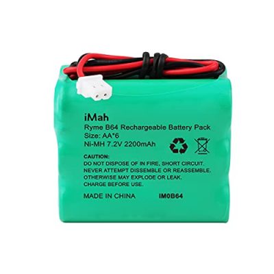 The iMah Ryme B64 6-Cell AA 7.2V Battery 2200mAh is a replacement battery pack for Security Alarm Systems. It is made of 6-cell AA Ni-MH 2200mAh battery cells and is designed to provide the same working time as your original battery pack when it was new. The battery connector plug is a round-hole 2-pin plug. It is compatible with various Security Alarm System models, including GP2200AAH6YMX, GP2200AAM6YMX, GP130AAM6YMX, 211AFH6XMK, and GP211AFH6XMK. iMah offers a 24-hour email support, 1-year free replacements, and lifetime free-updates service. Make sure to check the compatible Voltage, Cell type, and Connector for the best fit.