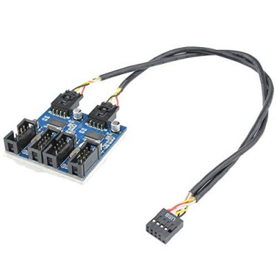 The Kalolary 9pin USB Header Male 1 to 4 Female Extension Cable Card Motherboard 9-Pin USB HUB USB 2.0 9 pin Connector Adapter Port Multilier is a reliable solution for those in need of additional USB connectivity. With its convenient splitter design, it allows users to connect multiple devices to their motherboard. The double chipset ensures stable performance, and the back glue makes installation a breeze. However, some users have reported slow data transfer and compatibility issues with certain motherboard configurations. Overall, it is a useful accessory, but it is recommended to check compatibility before purchasing.