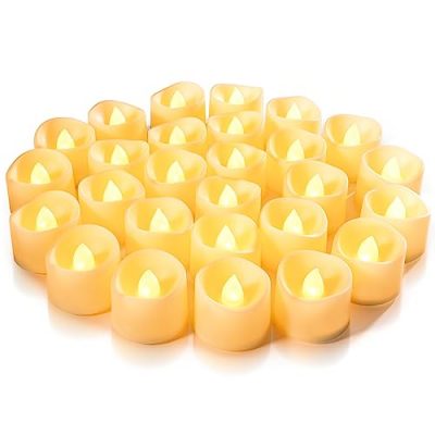 The Battery Tea Lights are a great choice for creating a cozy and romantic ambiance without the worry of fire hazards. With a pack of 24 LED tea lights that have a warm yellow flickering flame, these candles provide a realistic and bright glow. The long-lasting battery life ensures that you can enjoy their charm for at least 200+ hours. Perfect for weddings, parties, and other occasions, these tea lights fit well in various decorations. While they are not suitable for continuous use, they are a cost-effective and safe alternative to traditional candles. Illuminate your space with these elegant and hassle-free flameless tea lights!