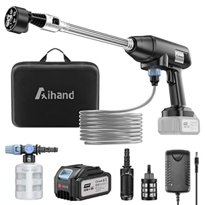 The Aihand Cordless Pressure Washer is a powerful and portable cleaning solution for all your outdoor spaces and equipment. With a motor capable of spraying up to 652 PSI and a 4.0Ah battery providing long-lasting power, this pressure washer allows you to quickly and easily clean a variety of surfaces. It comes with a 16.5ft hose with a filter basket to effectively filter impurities, and a 6-in-1 spray nozzle with different modes for versatile cleaning. This cordless pressure washer is lightweight and portable, making it ideal for both DIY enthusiasts and professionals. With multiple accessories and a 12-month warranty, the Aihand Cordless Pressure Washer is a smart investment for all your cleaning needs.