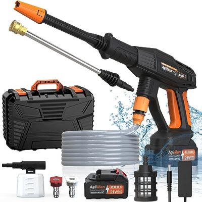 The AgiiMan Cordless Pressure Washer is a reliable and convenient cleaning tool for various cleaning tasks. Its powerful motor and dual nozzle technology ensure effective and efficient cleaning, while the high capacity battery and flexible water source provide convenience and flexibility. With the inclusion of multiple nozzles and a foam sprayer, it offers versatility for different cleaning needs. The lightweight and compact design make it easy to use and store. While it may not be the most heavy-duty option, it excels in everyday cleaning tasks. Overall, it is a great investment for those looking for a portable and reliable pressure washer.