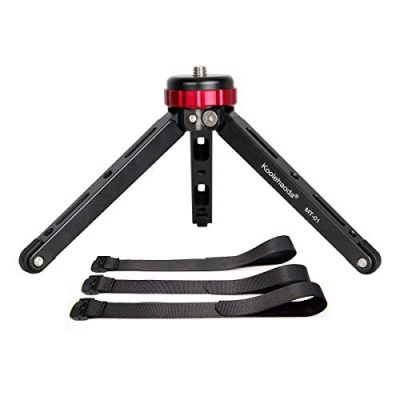 The Koolehaoda Mini Tripod is a portable and lightweight desktop tabletop tripod made from sturdy CNC aluminum alloy. It can support up to 66 lbs while weighing only 0.57 lbs. This versatile tripod can be used as a handheld grip and is designed for use with DSLRs, mirrorless cameras, or phone/GoPro tripod adapters. It is ideal for various photography purposes such as product photography, wildlife photography, and vlogging. The tripod features adjustable legs with two working heights, a 1/4 to 3/8 screw adapter for easy installation, and mounting holes for additional accessories. With its solid base support and rubber feet, it provides stability on various terrains. Overall, the Koolehaoda Mini Tripod offers durability, versatility, and convenience for photographers and videographers.