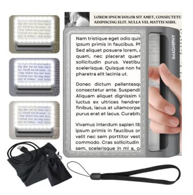 - Size and Weight: Consider the dimensions and weight of the magnifier. Make sure it is large enough to cover the entire page comfortably but not too heavy or bulky to hold for long periods.