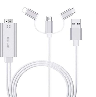 The GrayRabbit 3 in 1 HDMI Cable Adapter is a versatile device that allows you to mirror movies, pictures, games, and slideshows from your micro USB/Type C mobile phone or iPhone to an HDMI-equipped TV, monitor, or projector. It supports a maximum resolution of 1080P, providing you with high-definition visual enjoyment. The adapter features an imported chip and oxygen-free copper core, ensuring stable and fast transmission. It is compatible with various iPhone and Samsung models. Please note that it does not support paid apps like Netflix or Amazon Prime videos. The GrayRabbit HDMI cable adapter is easy to use, requiring no Wi-Fi or driver downloads. Simply connect your phone or device and wait a few seconds for it to automatically establish a connection. With its stylish and durable aluminum alloy shell, this adapter is a reliable companion for meeting all your mobile screen mirroring needs.