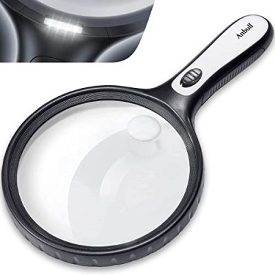 The ANBULL 5X 15X Magnifying Glass with Lights is a must-have for anyone with low vision or for reading small prints. Its oversized 5.5-inch reading lens covers a wider range of reading, while the 5X magnification and built-in 15X small lens provide clear, distortion-free images. The magnifier also features four bright LED lights that enhance visibility in dark places. It is easy to use, lightweight, and comes with a cleaning cloth, portable storage bag, and a 12-month warranty. Overall, the ANBULL magnifying glass is a great gift for seniors and children who enjoy reading.