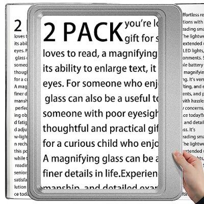 The [2 Pack] 5X Magnifying Glass is a lightweight and ergonomic handheld magnifier designed for reading. With a large viewing area and clear optical-grade lenses, it provides 5x magnification without distortion. The magnifier is ideal for seniors and individuals with low vision, offering a suitable viewing distance for reading books, newspapers, and even tiny electronic gadget parts. Its silver color and ergonomic design make it comfortable to hold for long periods of time. The magnifier is lightweight and portable, fitting easily into a purse or bag. Overall, it is a functional and affordable magnifying glass that serves its purpose well.