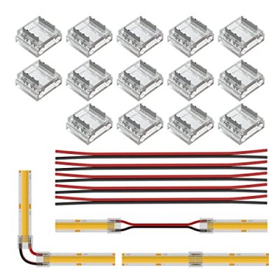 The BTF-LIGHTING FCOB COB 10mm 0.39in Connector Kit is a versatile product designed for connecting and extending FCOB strip lights. The kit includes 14 transparent connectors and 5 extension wires, allowing for various connections and functions. With its seamless and firm fixing, simple operation, and high-quality design, this connector kit offers excellent value for money. It is compatible only with 10mm width FCOB COB LED strip lights. The connectors are disposable and need to be broken before removing the LED strip. Although the clips may not make direct contact with the copper traces, the FCOB LED strip will work perfectly. Overall, the BTF-LIGHTING FCOB COB Connector Kit is a reliable and cost-effective solution for connecting FCOB strip lights.