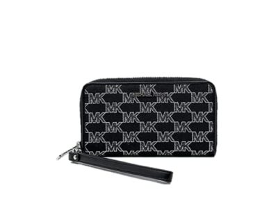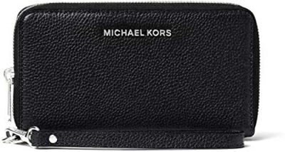 The MICHAEL Michael Kors Jet Set Large Flat Phone Case Wristlet is the perfect accessory for individuals on the go. This stylish wristlet features a phone case, wallet, and purse all in one, allowing you to carry your essentials in a compact and convenient manner. The wristlet is made by Michael Kors, a renowned brand known for its high-quality and fashionable products. The sleek black color adds a touch of elegance to any outfit. With dimensions of 7.10Lx5.10Wx1.00H, it can comfortably fit most smartphones. Whether you're attending a social event or running errands, this wristlet is a practical and stylish choice.