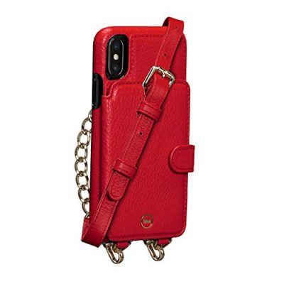 The Kyla Crossbody Snap On Cell Phone Case is a fashionable and functional mobile phone leather case designed with luxury leather. It offers drop safe protection, wireless charging compatibility, and a secure tab enclosure. With its multi-card feature and built-to-last design, this case is perfect for iPhone Xs Max users who want style and convenience. The case comes in a vibrant red color and has precise cutouts for full access to all device openings. It also comes with a gold leather strap that extends down to 27.5 inches, providing flexibility. Overall, the Kyla Crossbody Snap On Cell Phone Case is a durable and stylish choice for iPhone Xs Max users.