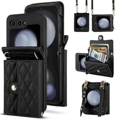 The Jiunai Samsung Galaxy Z Flip 5 Case is a stylish and functional accessory designed exclusively for the Samsung Galaxy Z Flip 5 5G 2023 model. This wallet case features a convenient 4-card slot pocket on the back, allowing you to carry multiple credit cards, IDs, licenses, cash, or other essentials without the need for a bulky purse. It also comes with a crossbody adjustable strap, giving you the option to carry it like a purse. Made of premium leather, this case offers a luxury and stylish look while providing a smooth grip. It provides full protection for your Samsung Galaxy Z Flip 5 and even includes RFID blocking for enhanced personal security.