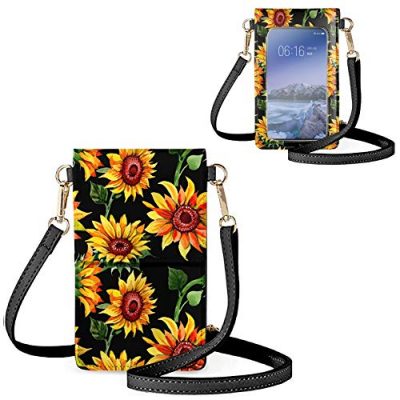 The WELLFLYHOM Blooming Sunflower Touch Screen Cell Phone Purse is a small crossbody bag designed for women and girls. It features a clear window mobile phone case holder, allowing you to use your phone directly through the bag. The bag is made of high-quality PU leather fabric with a PVC touchscreen window and reliable magnetic buttons. It has two inside open pockets for storing small items like credit cards, keys, and headphones. The adjustable and removable shoulder strap offers versatile carrying options. This purse is perfect for outdoor activities like walking, hiking, and traveling. It also makes a great gift for special occasions. The bag is lightweight, smart, and fashionable with its blooming sunflower design.