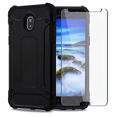 The Phone Case for Samsung Galaxy J7 Star J 7 Crown 7J Refine 2018 J7V V 2nd Gen with Tempered Glass Screen Protector Cover Stand Hard Rugged Cell Accessories Glaxay Aura S767VL SM J737V Cases Men Black is a rugged phone case designed specifically for the Samsung Galaxy J7 series. It offers a combination of soft rubber and hard plastic materials for enhanced protection against drops and impacts. The case features a built-in kickstand for convenient hands-free viewing and comes with a tempered glass screen protector as a free gift. With raised edges, it ensures added protection for the camera and screen. The case is compatible with J7 Refine, J7 Star, J7 2018, J7 V 2nd Gen, J7 Aura, J7 Crown, J7 Top, J7 Aero, and J7 Eon. Overall, it is a durable and functional phone case that provides reliable protection for your Samsung Galaxy J7.