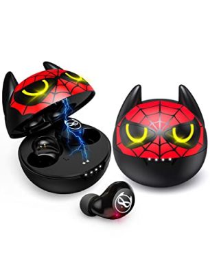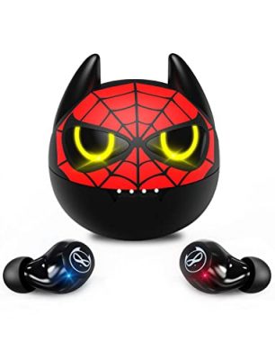 The Red Wireless Earbuds are cartoon Bluetooth headphones that feature a unique superhero design, making them popular with both kids and adults. The earbuds have blinking gold eyes when charging, adding a fun touch. These earbuds are perfect for back to school, birthdays, Halloween, and Christmas. They offer high-quality clear sound with deep bass and crisp highs, thanks to the dynamic drivers. The earbuds are comfortable, safe, and mini-sized, making them suitable for small ears. They are also tangle-free, providing a hassle-free listening experience. Additionally, the earbuds come with a soft cushion for noise isolation and offer true wireless Bluetooth connectivity. Overall, the Red Wireless Earbuds are an ideal gift for kids and are designed for comfort, durability, and enjoyable listening.