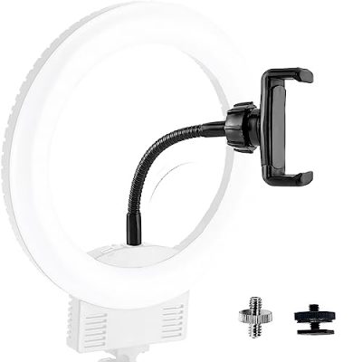 The Phone Holder for Ring Light and Tripod Stand is a versatile accessory for your photography needs. It features a detachable design, allowing it to work with both a 1/4 male thread or hot shoe dock. Compatible with Ubeesize ring light phone stands or any stand tripods with the mentioned connectors, this phone mount adapter is perfect for iPhone, Samsung, Huawei, Google Pixel, and other mobile phones. The flexible arm is made of a 15cm long soft metal tube covered by silicone, offering easy adjustment for your desired angles. With a sturdy build and durable construction, this phone holder is a reliable option for holding your phone securely during your photography sessions. Whether you're a professional photographer or an aspiring content creator, this product is a must-have for your equipment.