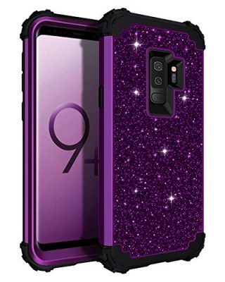 The LONTECT for Galaxy S9 Plus Case is a luxury glittery cover designed to provide heavy-duty protection for your Samsung Galaxy S9 Plus. With its bling bling style, this case adds a touch of glamour and fashion to your phone. Its 3-in-1 design includes a plastic back cover, plastic bumper, and silicone inner frame, offering maximum protection against drops and scratches. The case covers all four corners and features raised edges and a lip to prevent the screen from scratching or touching the ground. It provides easy access to all ports and features, and it does not have a built-in screen protector. Available in shiny purple/black, this case is the perfect gift for your loved ones. Customer reviews have given it a rating of 4.1/5.