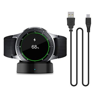 The Updated Charger Compatible with Samsung Galaxy Smart Watch 42mm 46mm is a reliable replacement charging dock cradle specifically designed for Samsung Galaxy Smart Watch SM-R800 SM-R810 SM-R815 (NOT for Active Watch). It features a compact and lightweight design, making it ideal for travelers and business users. The built-in magnet securely holds your Samsung galaxy smart watch while charging, ensuring a reliable charging experience. The charger is recommended to be used with charging currents below 1A and is best charged through a computer USB port rather than a fast charger. Please note that a USB power brick is not included with the charger. Overall, this charger provides a convenient and efficient solution for keeping your Samsung Galaxy Smart Watch powered up and ready to go.