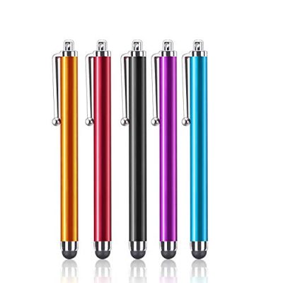 The Stylus Pens for Touch Screens by Abiarst are a 5-pack of portable and high precision capacitive stylus pens. With a hidden disc tip, no need for caps or covers anymore. The compact pen body and telescopic design make it easily portable. It is highly accurate and sensitive with a flexible disc tip that doesn't leave disconnecting lines on the screen. No need to charge or connect via Bluetooth. Works for all touch screens including iPhone, iPad, tablets, and more.