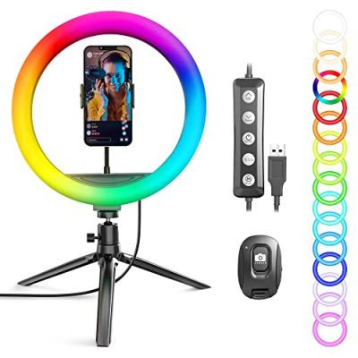 The 10″ RGB Color Changing LED Ring Light is a fantastic addition to any content creator’s toolkit. Its high-quality LED lighting and customizable RGB mode ensure optimal illumination for various applications. The convenience of USB power and a remote shutter enhances ease of use, while the adjustable gooseneck and universal phone holder offer flexibility. The compact size of the mini tripod stand makes it suitable for various environments. The only drawback is its limited compatibility with wider smartphones. Overall, this versatile and affordable lighting solution is perfect for TikTok, makeup tutorials, live streaming, and more.