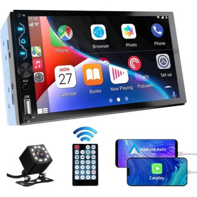 Upgrade your car with the Double Din Car Stereo Radio. This car stereo is compatible with Apple Carplay and Android Auto, allowing you to access various smartphone features while keeping your focus on the road. It features a 7-inch HD touchscreen with voice control, mirror link function, backup camera, steering wheel controls, Bluetooth connectivity, and AM/FM radio. The stereo also supports USB, SD, and aux inputs, and has a 16-band EQ sound effect. Its 7-inch capacitive touch screen is sensitive and accurate. With the rear view camera, you can safely reverse your car. The stereo comes in a universal size to fit most vehicles. Score: 7/10