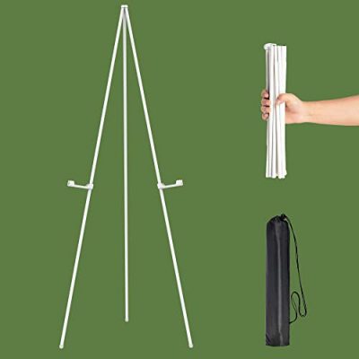 The Display Easel Stand for Wedding is a portable and foldable easel that is perfect for traveling. With a max height of 63 inches and adjustable plastic clip height, this easel ensures that your display is well-seen and your presentation is effective. It can hold up to 10 lbs and is suitable for signs, posters, and light whiteboards. No installation is required, simply unfold it for instant use. When not in use, it can be easily stored in the carrying bag. While it works well for displaying items, it may not be suitable for painting due to its wobbliness and limited support. Overall, it is a good product for light duty use.