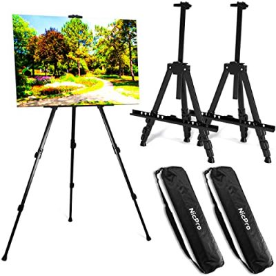 The Nicpro 2 Pack Artist Easel Stand offers a reliable and convenient solution for displaying artwork, signs, and posters. With its foldable and portable design, adjustable height, and sturdy aluminum construction, it provides versatility and stability. The easel is suitable for both tabletop and floor displays, making it ideal for various events and exhibitions. Despite some minor drawbacks like slight wobbliness and occasional quality issues with clips, the overall performance and customer satisfaction of the product make it a great choice for artists, exhibitors, and anyone in need of a reliable easel stand. With a rating of 4.5/5, it is definitely worth considering for your display needs.
