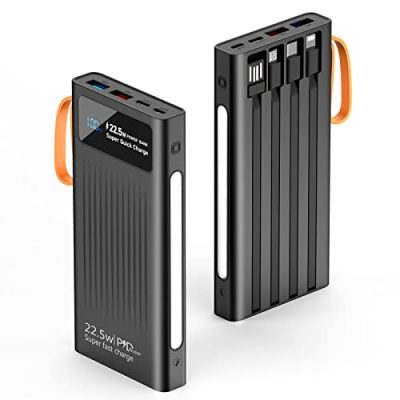 The Portable Charger with Built-in Cables by Mandarooker is a must-have power bank for users on the go. This slim and portable device features built-in output cables for iPhone, USB-C devices, and micro-USB devices, eliminating the need to carry extra cords. With 6 outputs and 3 inputs, it can charge up to 6 devices simultaneously, making it perfect for charging multiple devices at once. The 10000mAh battery bank is compact and lightweight, easily fitting into your travel bag. It is universally compatible with all popular smart devices and comes with a self-contained LED lamp, perfect for outdoor activities. With its sleek design, convenient features, and wide compatibility, the Portable Charger with Built-in Cables is a versatile and reliable power bank for all your charging needs.