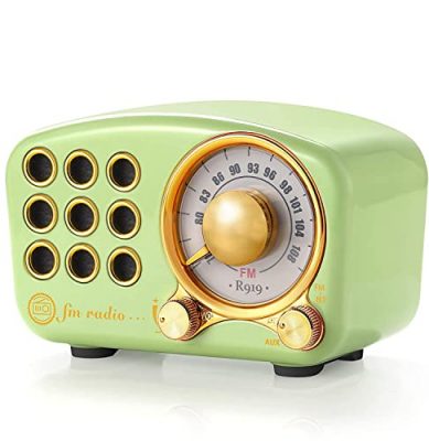 The Greadio Retro Bluetooth Speaker is a small but surprisingly loud portable speaker designed in a vintage retro style. With Bluetooth 5.0 technology, it can connect to your phone in less than a second and has a range of up to 33 feet. You can also play music through AUX, TF card, or USB flash drive. The speaker is portable with a built-in rechargeable battery that lasts up to 6 hours. Its palm size and unique retro design make it a perfect decoration. The Greadio Retro Bluetooth Speaker also makes a great gift for family and friends.