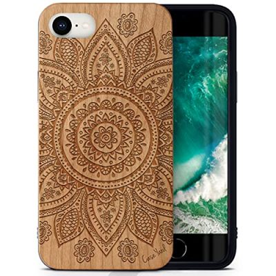 The CaseYard Wood Phone case for iPhone SE is a stylish and protective phone cover that features a laser engraved Cherry Wood Mandala Design. Made of 100% Cherry Wood and TPU case, this premium case is not only attractive but also durable. It is designed to fit the iPhone SE perfectly, with precise cut-outs for all ports and buttons. The wood case is easy to clean and can withstand daily use. Overall, it is a decorative and comfortable phone case that offers protection without interfering with the phone's function or reception.