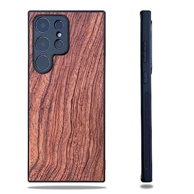 The FM.HGQ Wood Case for Samsung Galaxy S23 Ultra Case is a unique and classy shockproof protective cover made with hand-finished wood and a flexible rubber shell. The wood is carefully hand oiled for a natural look, feel, and smell, while also being water-resistant and scratch-resistant. The case features wireless charging compatibility, durable shockproof protection, raised lip for extra screen protection, and a warm, luxurious veneer wood texture that is fingerprint-resistant. This case is only compatible with the Samsung Galaxy S23 Ultra. With its premium craftsmanship and unique wood design, this case offers both style and protection for your phone.