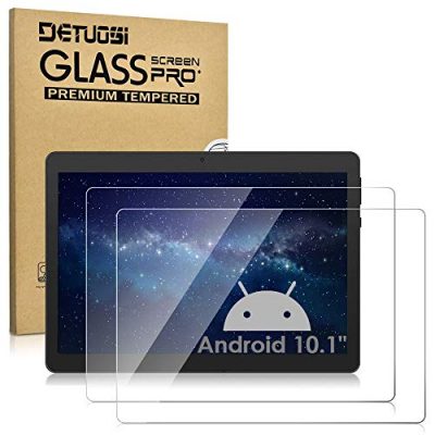 The 2 Pack DETUOSI Screen Protector is a compatible and protective accessory for specific 10.1-inch Android tablets. Made of premium tempered glass, it offers high rigidity defense against scratches and wear. The screen protector has a precise cut and design, making it easy to install without any bubbles. It effectively safeguards the touch screen from everyday damage caused by stylus, pens, and fingertips. The package includes 2 screen protectors and an accessories kit. Please note that this tempered glass is only compatible with certain tablet models and does not fit all 10.1-inch tablets. Ensure to check the model number and camera position before purchasing.