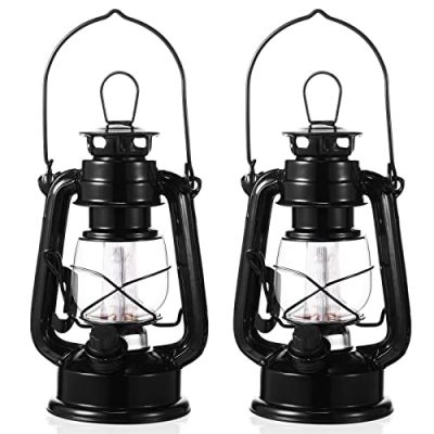 The 8 Inch Vintage LED Hurricane Lantern is a stylish and functional lighting option for both indoor and outdoor use. This set includes 2 lanterns in a retro black color, providing ample lighting for your needs. The lanterns are battery-operated, requiring 4 AA batteries (not included), allowing for easy portability and no risk of flames. They feature a hanging loop for convenient placement and can also be used as tabletop centerpieces. The lanterns come with dimmer switches, allowing you to adjust the brightness according to your preference. With its classic design, this lantern is suitable for various occasions such as home decor, camping, hiking, and more.