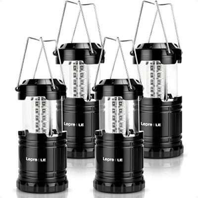 The Lepro LED Camping Lanterns are lightweight, portable, and perfect for outdoor activities or emergency situations. With a 360-degree beam angle, these lanterns provide sufficient brightness to illuminate tents or rooms. They are collapsible, making them easy to store in your cabin, backpack, or survival kit. The lanterns are also water resistant, offering protection against splashing water from any angle. Powered by 3 AA batteries, they can be used immediately during power outages. The lanterns have a black color and a compact size of 4.92Lx3.35Wx3.35H. Overall, they are a reliable and convenient lighting solution for camping, emergencies, hurricanes, storms, and power outages.