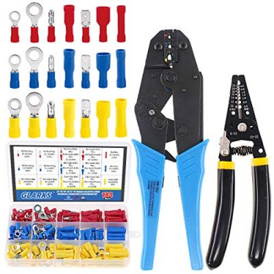 The Wire Terminals Crimping Tool by Qibaok is a professional-grade ratcheting wire crimper. Made of premium industrial grade high strength chrome vanadium steel, this tool offers good performance with rust and corrosion resistance. The precise ratcheting mechanism allows for easy crimping of wire connectors by squeezing the handle through a complete cycle. The crimping compression is adjustable and ensures uniform crimping each time. This crimping tool comes with a box of 800pcs connectors, including 27 types of wire terminals connectors. The connectors are color-coded for easy identification. With its high-quality construction and included connectors, this crimping tool provides great value for the price.