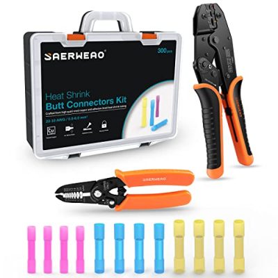 The Heat Shrink Butt Connectors kit by SAERWEAO is a complete wiring kit designed for wiring enthusiasts. It includes 300 heat shrink butt connectors, a crimping tool for heat shrink butt connectors, and a wire stripper. The crimping tool is designed for AWG 22-10 connectors and features a comfortable ratcheting mechanism. The butt connectors are made of high-quality tinned red copper and adhesive-lined heat shrink tubing, ensuring protection against the elements. They have a strong crimp that won't pull out, even in harsh environments. The kit offers a perfect combination of tools and connectors, meeting all your wiring needs. With its great value and quality, this kit is a must-have for any wiring project.