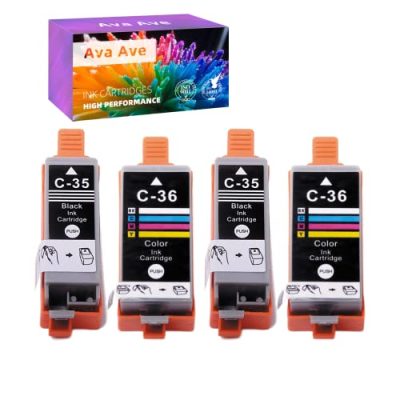 Upgrade your printing experience with the PGI-35 CLI-36 Ink Cartridges Replacement for Canon PIXMA Printers. This combo pack includes 2 X Canon pgi-35 ink cartridges and 2 X Canon cli-36 ink cartridges with high page yields. With a page yield of up to 200 pages per canon 35 ink cartridge and 250 pages per canon 36 color ink cartridge, you can enjoy sharp and vivid printing. These cartridges are compatible with Canon PIXMA TR150, iP110, iP100, mini260, and mini320 printers. Manufactured in ISO9001, ISO14001, SGS, and CE certified facilities, these ink cartridges are made with excellent formulated ink. Plus, they are tested and engineered to fit perfectly into your printers. Enjoy a lifetime warranty and professional customer solutions with Ava Ave.