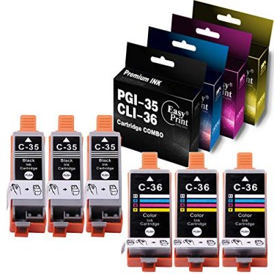 The (6-Pack, 3 x Black + 3 x Tri Color) Compatible PGI 35 CLI 36 PGI35 CLI36 Ink Cartridge by EasyPrint is a high-quality ink cartridge option for Canon PIXMA iP100 iP110 series printers. With a total of 6 ink cartridges included in the pack (3 black and 3 tri-color), it offers clear text printing, long color retention, high page yield, and fade-resistant prints. These ink cartridges are compatible with Canon PIXMA IP100 IP110 printers and provide excellent quality at a much more affordable price compared to manufacturer-branded cartridges. The package also comes with a promise of quality service, offering a full refund for defective items and dedicated customer support. However, some customers have reported issues with receiving incorrect or damaged cartridges, as well as inconsistent color quality.