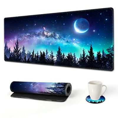 The AIMSA Extended Gaming Mouse Pad is a large and durable mouse pad that enhances your gaming and working experience. With its large size of 35 ×15.75 inch, it can accommodate your keyboard, mouse, laptop, phone, tablet, and more, making your desk layout simpler and clearer. The mouse pad features stitched edges to prevent wear and deformation, while the non-slip rubber base ensures stability during use. The ultra-smooth lycra cloth surface allows for precise mouse tracking. Additionally, it can be used as a desk pad to keep your desktop clean and tidy. This mouse pad is a great gift choice for friends and family.