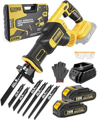 The ALLOYMAN Reciprocating Saw is a reliable and versatile tool that offers powerful cutting performance. With its included batteries and fast charger, you can work efficiently without interruptions. The variety of saw blades allows for different cutting applications, making it a great tool for both professionals and DIY enthusiasts. Its compact and lightweight design, along with the safety switch, enhances usability and safety. While there are some minor drawbacks like battery life and potential overheating, the overall performance and value for money make this saw a solid choice. Whether you’re cutting through wood, metal, or PVC pipe, the ALLOYMAN Reciprocating Saw will get the job done with ease.